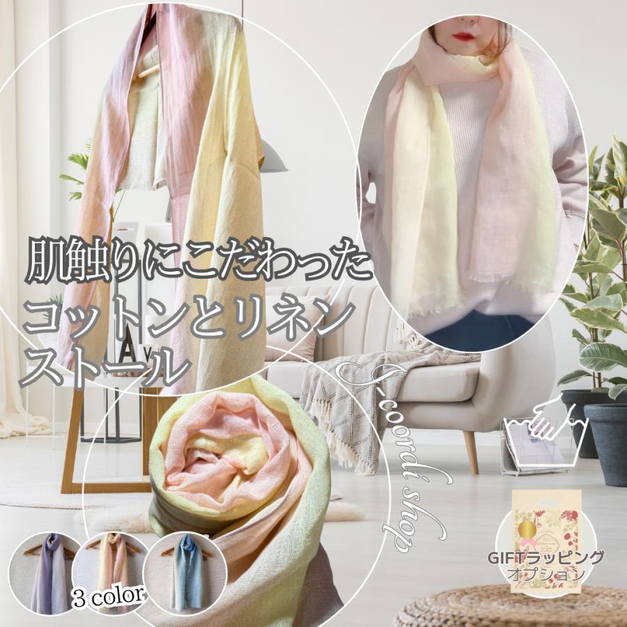 ストール 夏 春 春夏 薄手 コットン リネン ギフト 洗える 春物 春夏 夏用 薄い UV対策 ブルー イエロー ピンク グラデーション 冷房対策