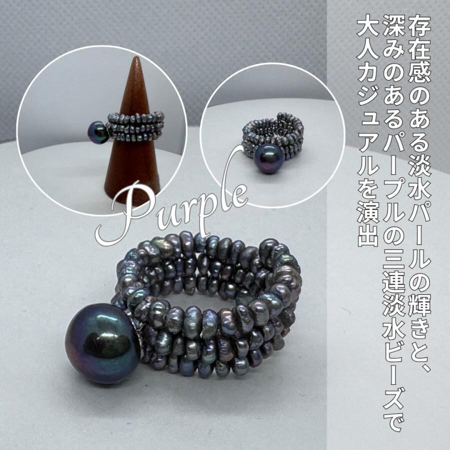 淡水パール 指輪 リング ビーズ 3連リング 上品 調整可能 誕生日 記念日 ギフト プレゼント カジュアルリング 淡水処理 パープル ピンク ホワイト ビーズの指輪