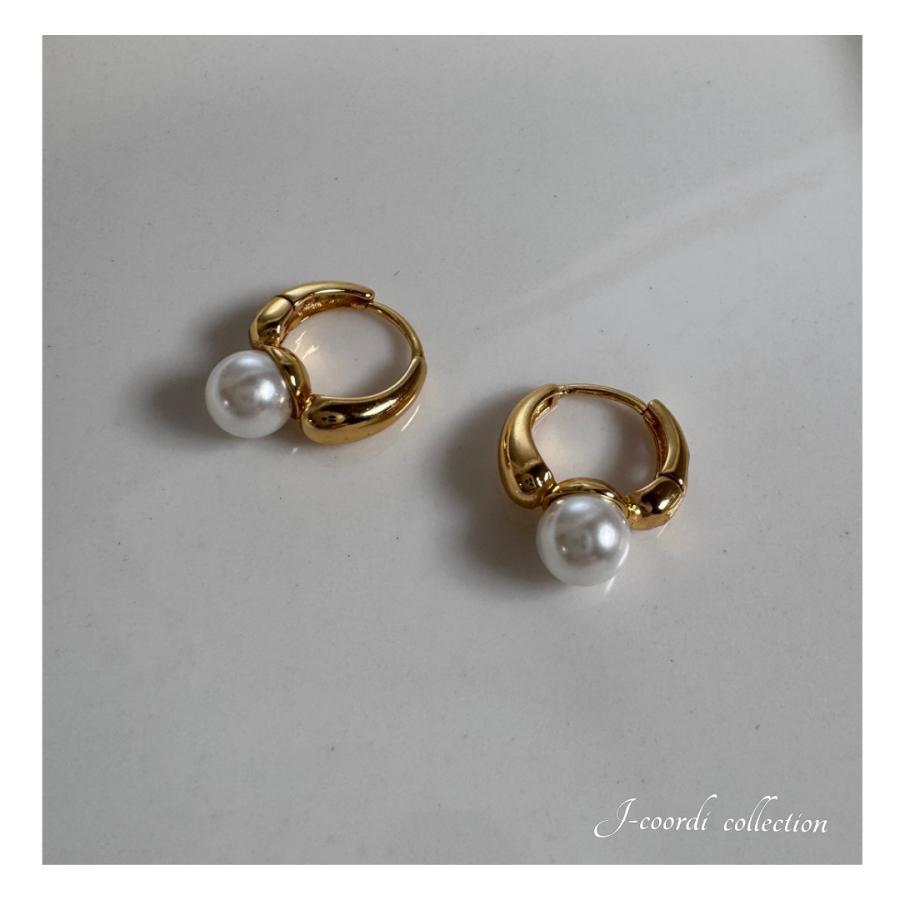 ピアス ゴールド カラー パールモチーフ フープ レディース アクセサリー 両耳用 プレゼント ギフト リング ドロップ 両耳用 2個セット