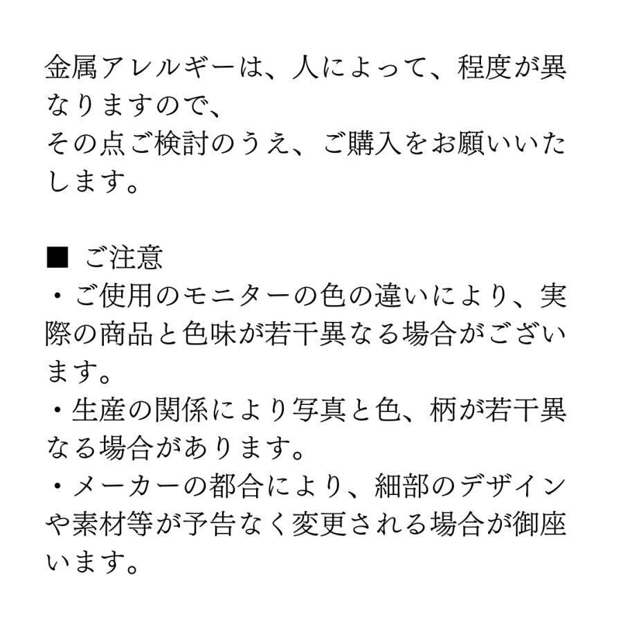 ※金属アレルギーが出にくい素材ですが、すべての方にアレルギーが出ないわけではありません。金属アレルギーは、人によって、程度が異なりますので、その点ご検討のうえ、ご購入をお願いいたします。