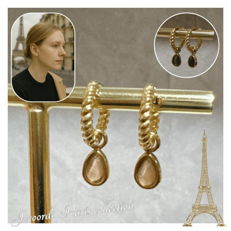 ねじれ模様が施されたフープデザインが、パリらしい上品な遊び心を感じさせる一品。繊細に煌めくストーンはゴールドと絶妙に調和し、まるでグラデーションのように自然に肌に溶け込みます。