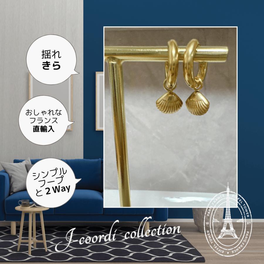 ピアス 揺れる フープ ゴールド カラー シェルシェープ 2way フランス 直輸入 レディース シンプル 誕生日 プレゼント 女性 ギフト