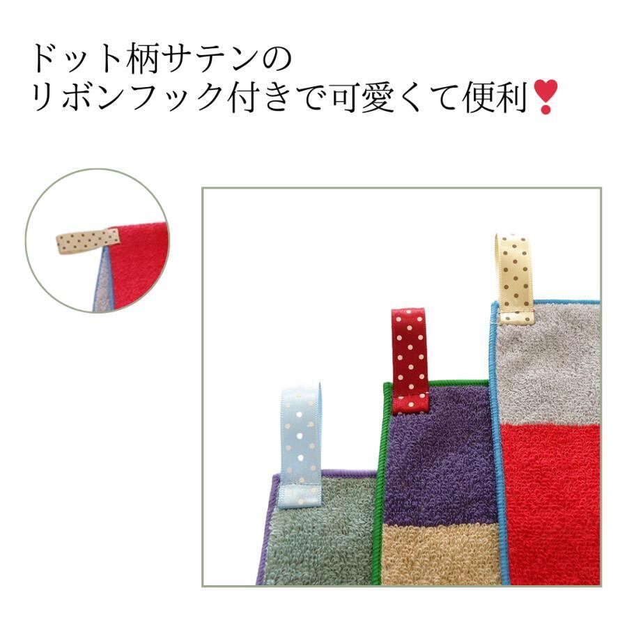 普通のタオルより少し小さめで、ループ付きのため、壁のフックなどに、タオル間の距離をとってかけられます。