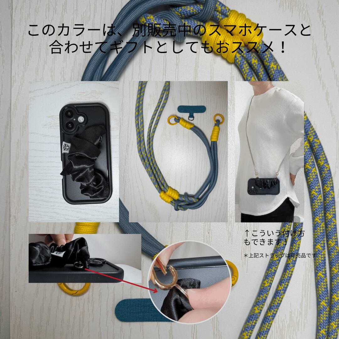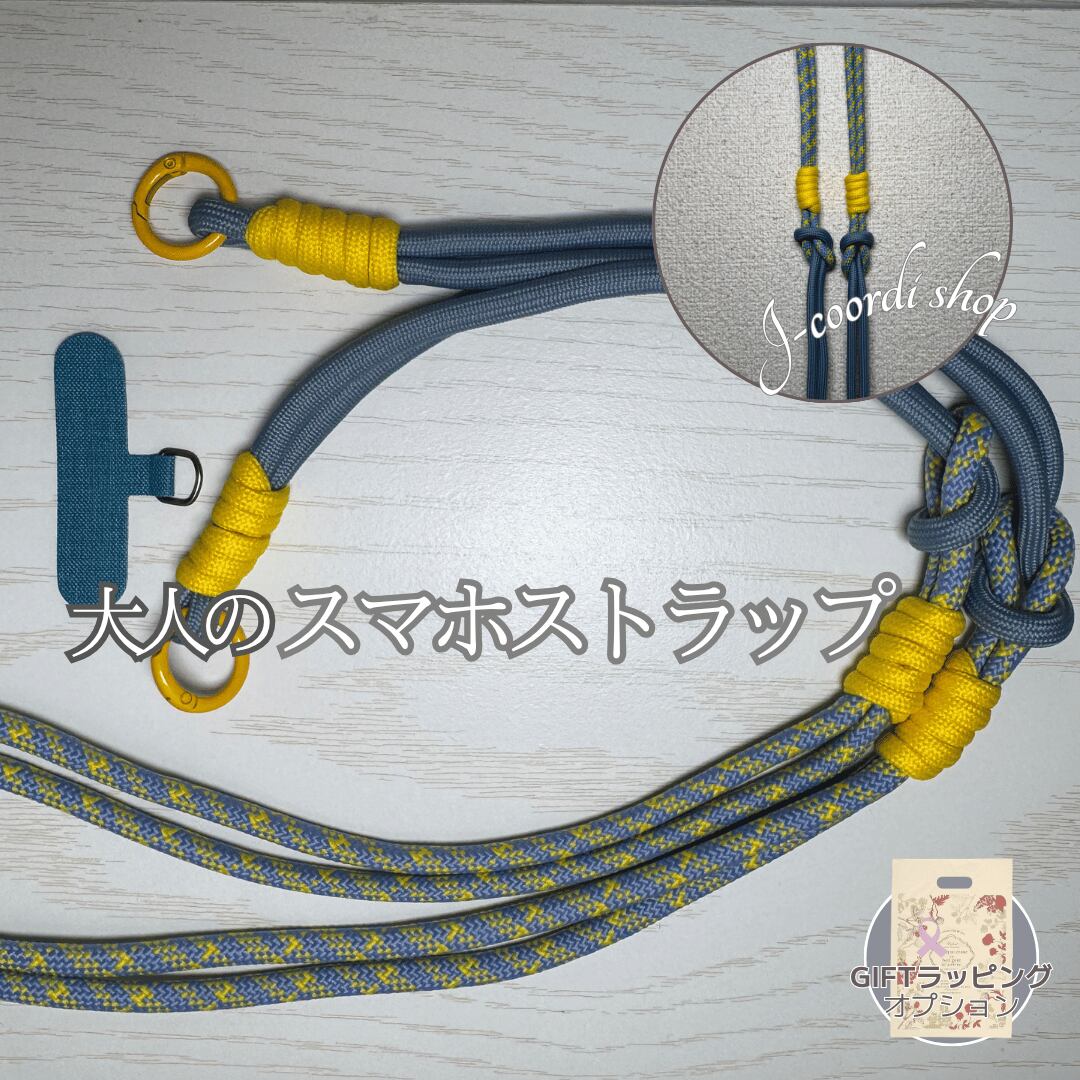 スマホショルダー ストラップ 太め 大人のスマホストラップ パラコード風 iPhone Android 対応 ホルダー付き ギフト 母の日 花以外 ブルー イエロー